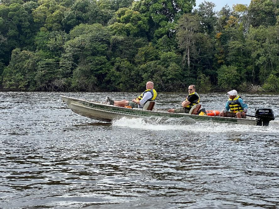 7 oktober door naar de locatie per prive charter en verdere transfer per boot naar Jaguar explorer camp