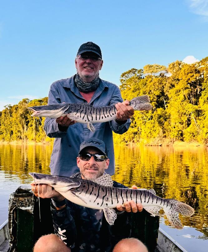 De roodstaart meerval is een van de hardst vechtende meervallen in de hele Amazone in relatie tot hun grootte. Een 80 lbs roodstaart zal je over de hele rivier slepen en je slip het nodige werk laten verrichten. Jau meervallen zijn de rottweilers van de rivier en leven onder de rotsen en in het snelle water en nemen je aas diep mee in hun grotten! De koning van alle meervallen is de lau-lau of ook wel piraiba genaamd. Deze vis kan meer dan 400 pond zwaar worden en wanneer hij aan de haak geslagen wordt, gaat hij er vandoor met een snelheid tot wel 50 km per uur. Het kan je dus wat tijd kosten om een van deze enorme vissen te landen.
