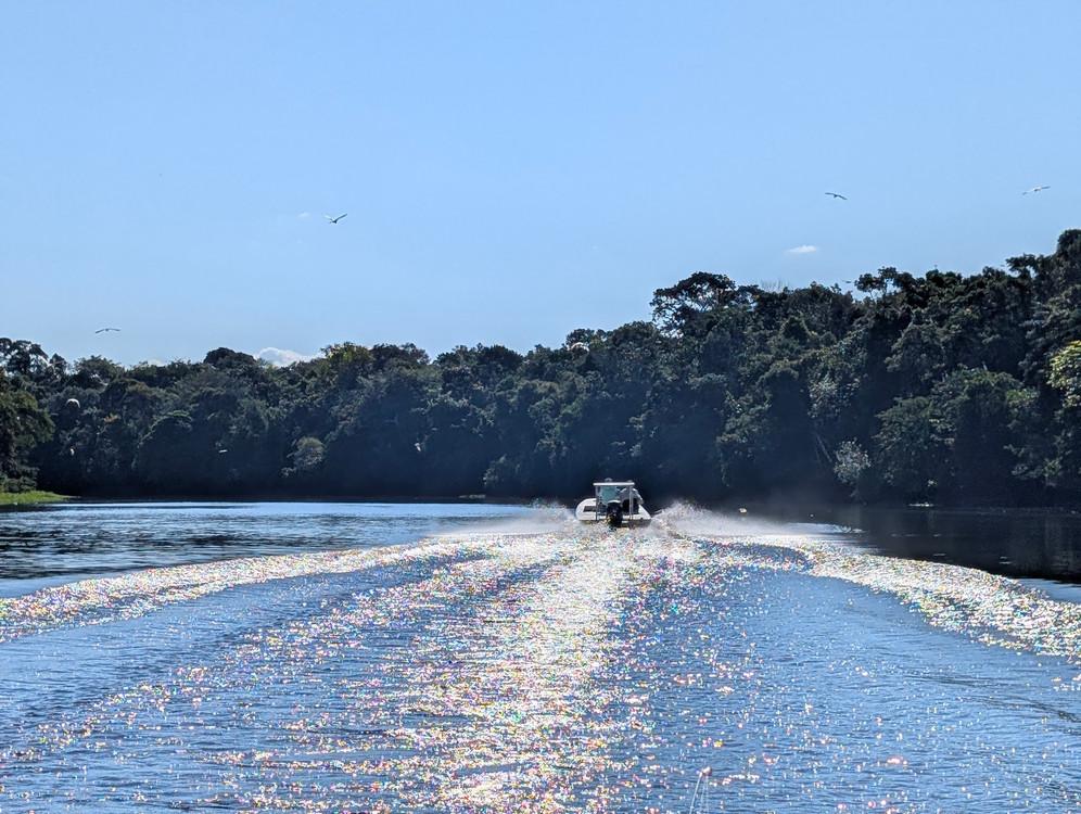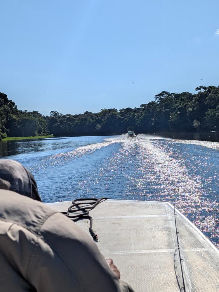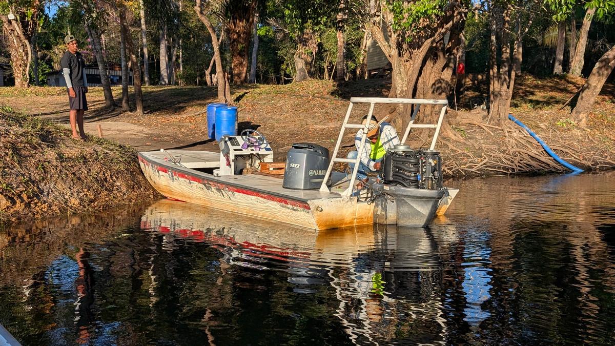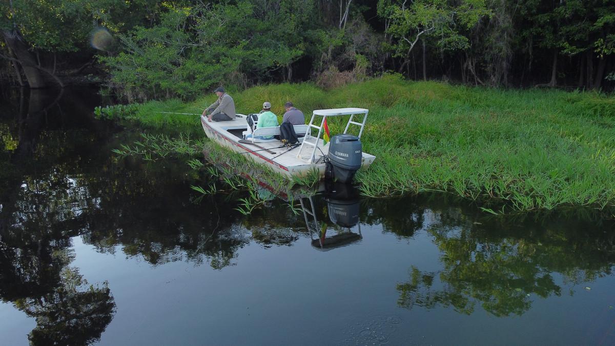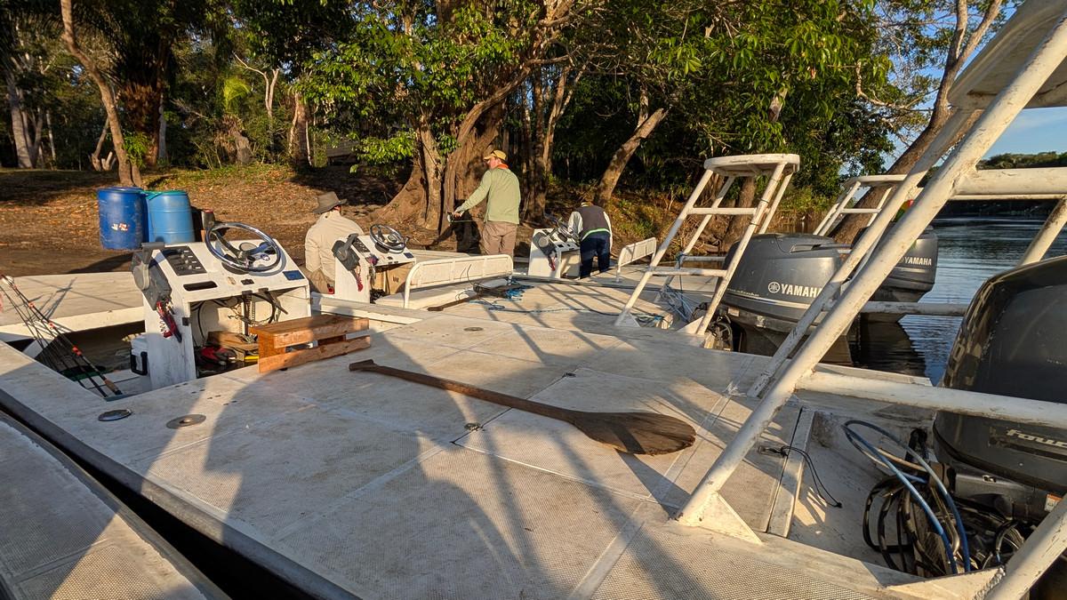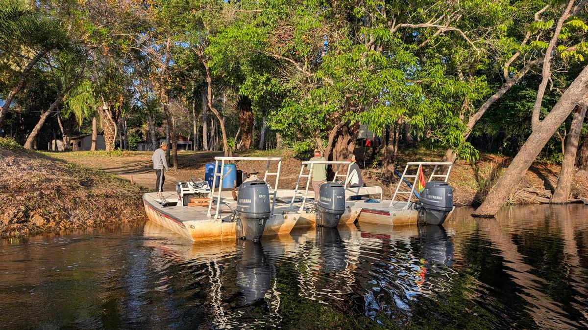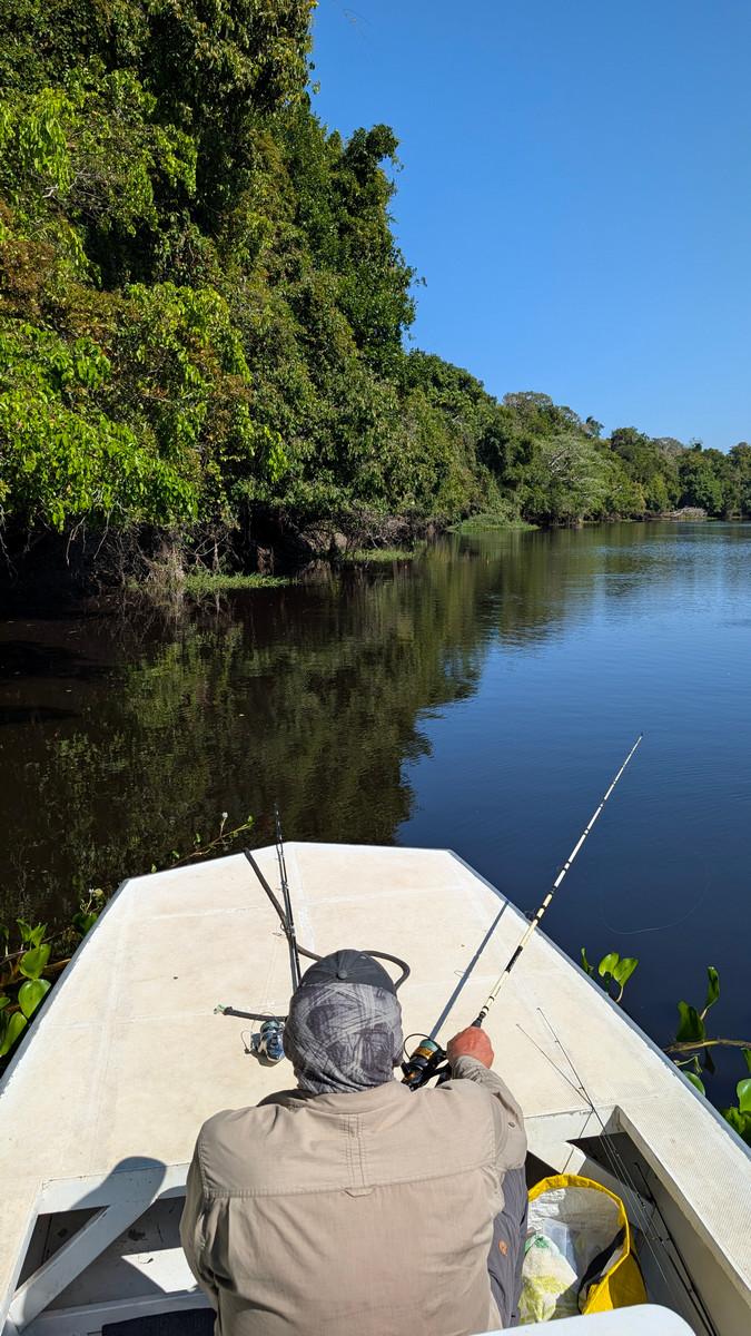 Op deze locatie wordt gebruik gemaakt van verschillende soorten visboten. Dat zijn platbodems en lokale visboten van rond de 16 voet en deze worden gevaren door lokale gidsen. Omdat de arapaima enorm schuchtere vissen zijn, wordt tijdens het vissen de buitenboormotor uitgezet en enkel met de peddel gevaren. Zodoende worden de vissen minder afgeschrikt en zijn de kansen om ze te vangen veel groter.