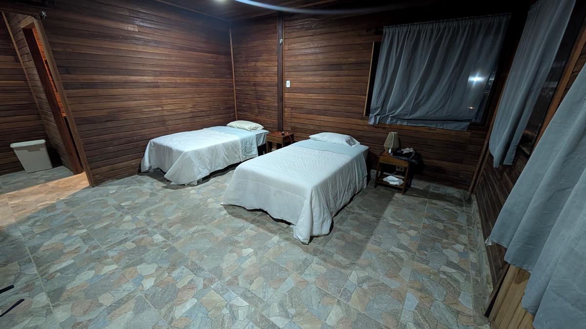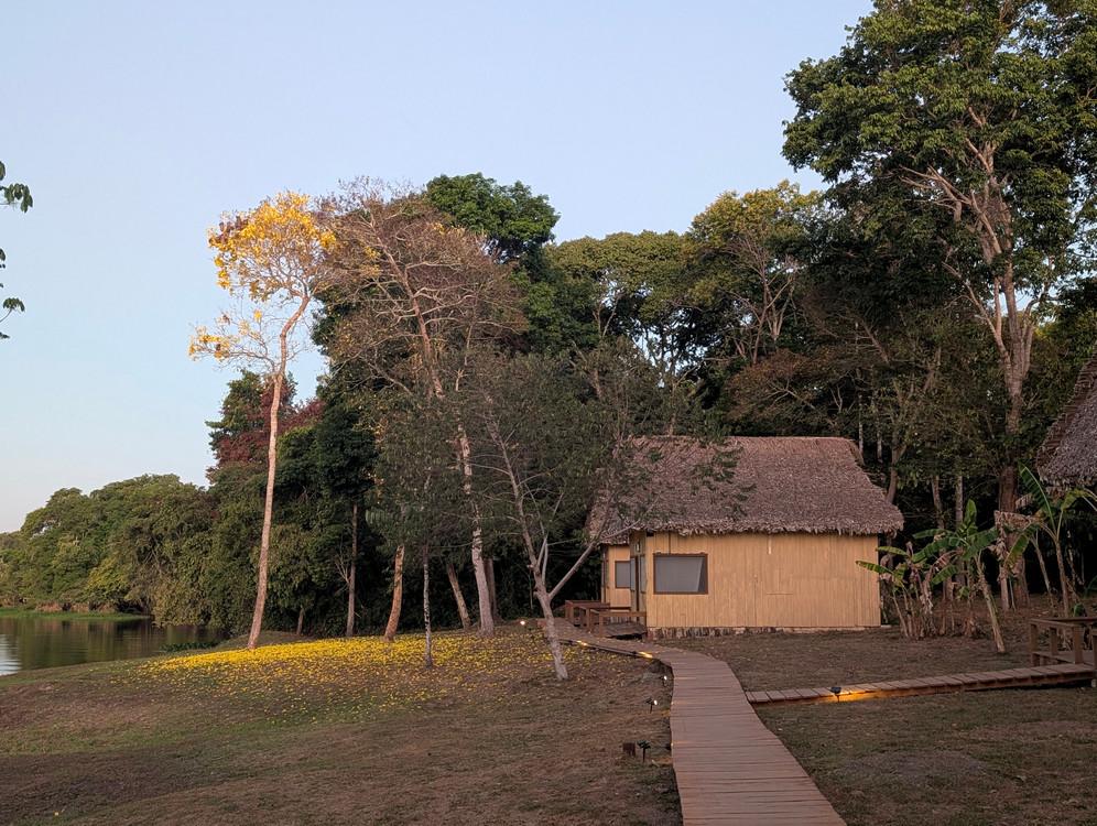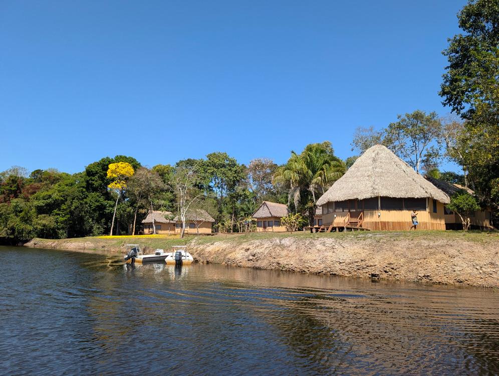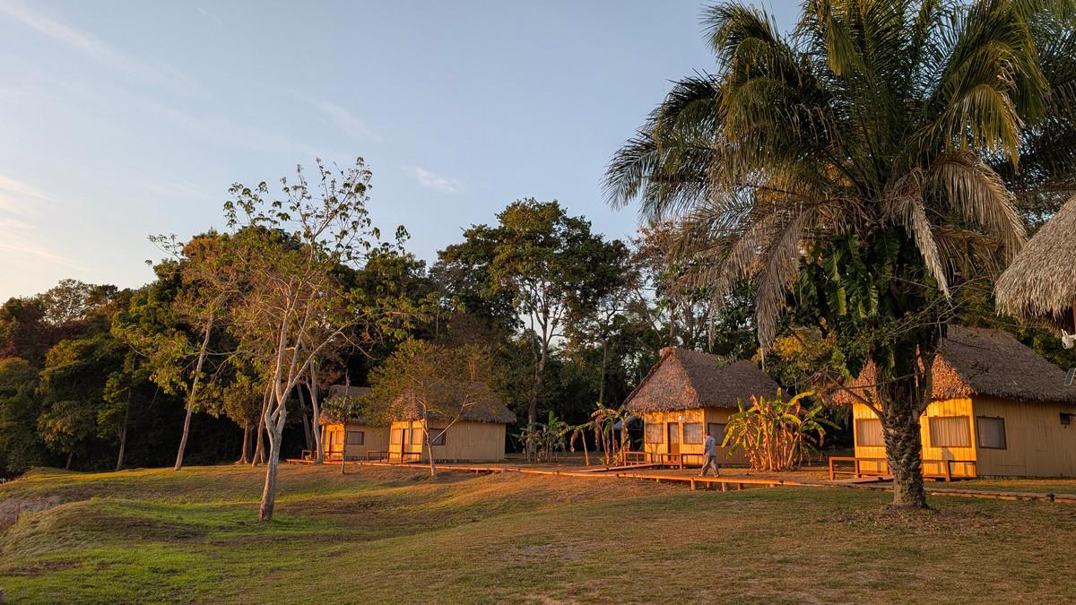 Ervaar de authentieke charme van de Boliviaanse jungle in onze rustieke maar comfortabele lodge. Vier privéchalets met airconditioning, twee eenpersoonsbedden en een eigen badkamer bieden een gezellig toevluchtsoord na een dag op het water. Kom samen met medereizigers in de gemeenschappelijke ruimte om verhalen te delen, van een drankje te genieten en de sfeer op te snuiven. Onze chef-kok bereidt elke dag verse, heerlijke maaltijden – zodat u weer vol energie aan uw volgende avontuur kunt beginnen en herinneringen kunt creëren die u uw hele leven bijblijven.
