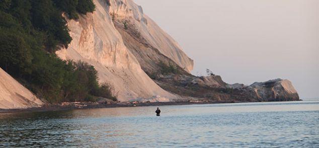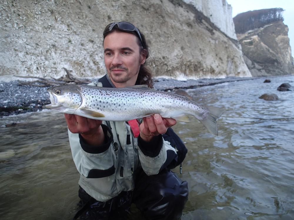 Het Deense eiland Møn, midden in de Oostzee, is beslist een van de mooiste plekken van Europa. Alle Deense landschappen zijn er vlakbij elkaar te vinden: akkers en moerassen, rietvelden en strandweiden, zandstranden en beukenbossen – en natuurlijk ook de imposante krijtrotsen aan de noordoostkant die als topstekken voor zeeforel wereldberoemd zijn geworden. Droom je al lang van een grote zeeforel, dan moet je hier zijn. Vissen van meer dan 50 cm zijn hier meer regel dan uitzondering, en bij onze testtrip vingen we meerdere vijftigers, met een vis van 75 cm/5-6 kilogram als topper.