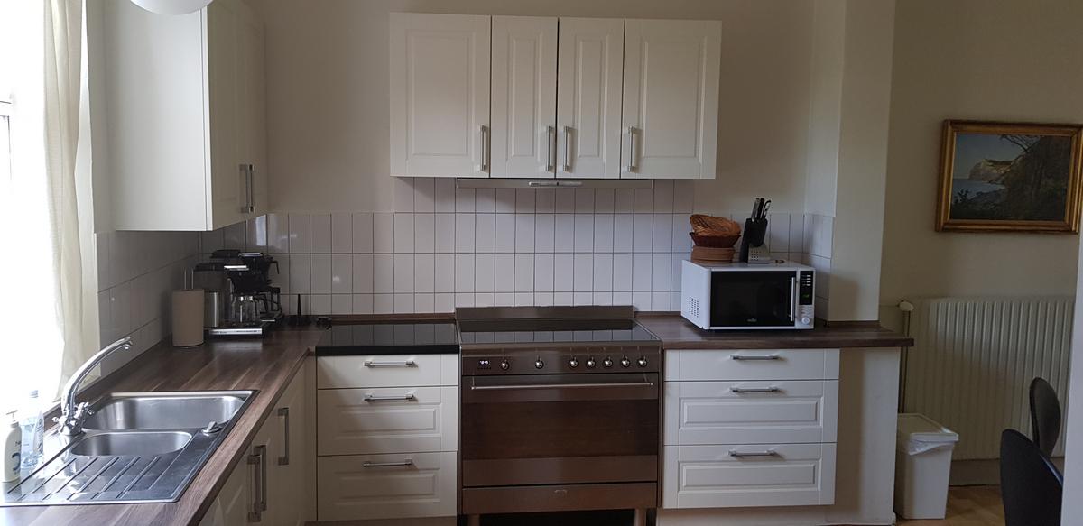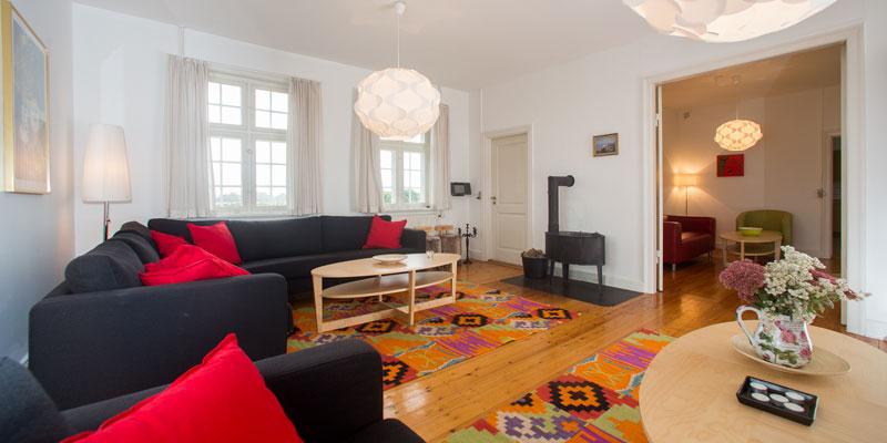 The lodge Dit is een prachtige en statige woning die in 1870 is gebouwd en vlak bij de kliffen van Moen staat. Rust, ruimte en perfect voor vissers! Het staat op 500 meter afstand van de trappen van Gråryg die direct naar het strand afdaalt. De Lodge is ingericht met een moderne grote keuken grenzend aan de eetkamer. In de tuin is er een houtkachel en beschik je verder over een volledig gemeubileerd terras met een prachtig uitzicht naar het westen. Er zijn 2 badkamers met douche en een extra bad in de kelder. Er is een gezellige woonkamer met TV en bank. Op de eerste verdieping zijn er 5 slaapkamers met een tweepersoonsbed en kastruimte. In totaal kunnen er 13 personen slapen. Verder zijn er faciliteiten als fileerplaats, vriezer en stromend water. De woning kan het heel jaar gehuurd worden en wifi, elektra, water, verwarming en hout voor de houtkachel is inbegrepen.
