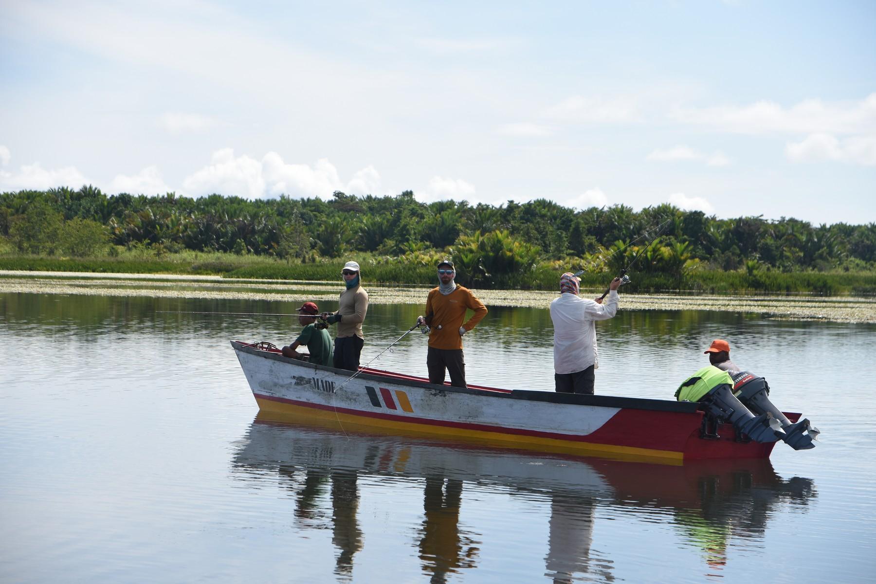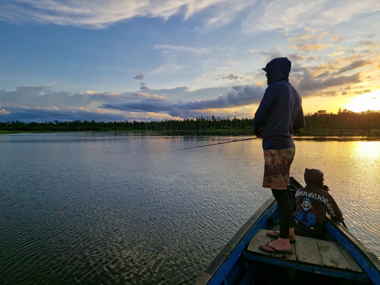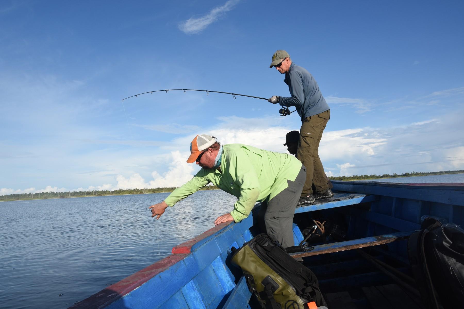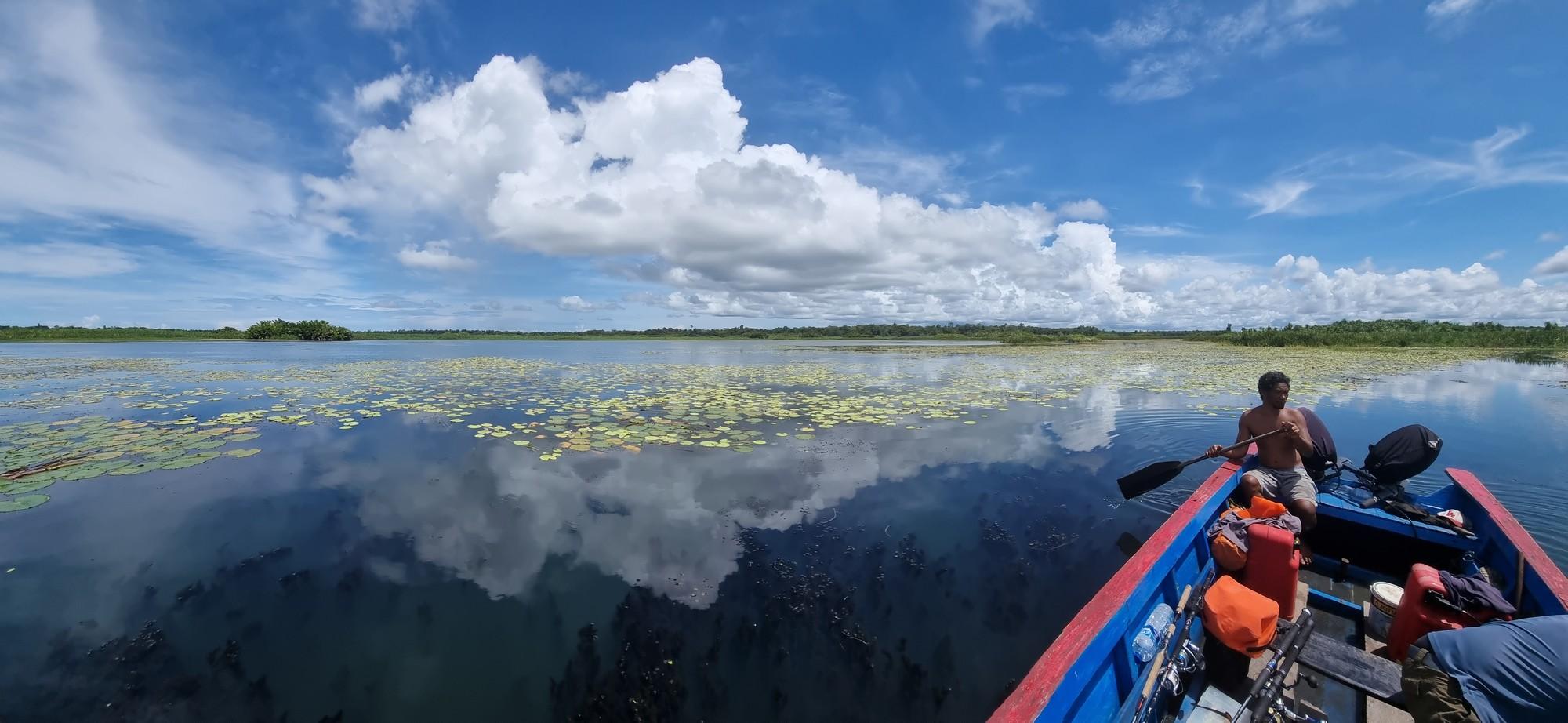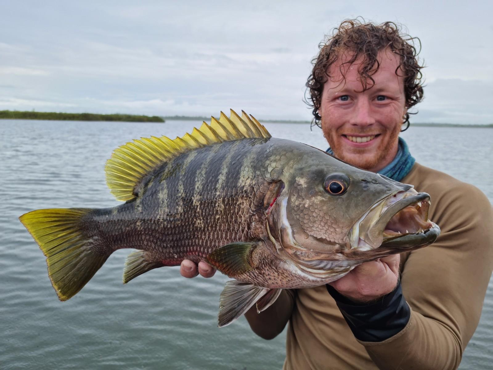 Maar ook hier kan de visserij soms taai zijn en moet je het met een enkele aanbeet doen op een ochtend/middag. Op de meren kun je wat ‘lichter’ vissen, zonder de slip helemaal dicht te draaien. Als een Papuan bass zich toch vastzwemt in een dik wierbed dan krijg je die daar met beleid meestal wel uit.