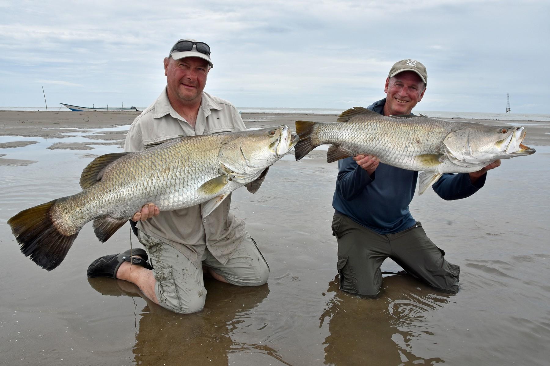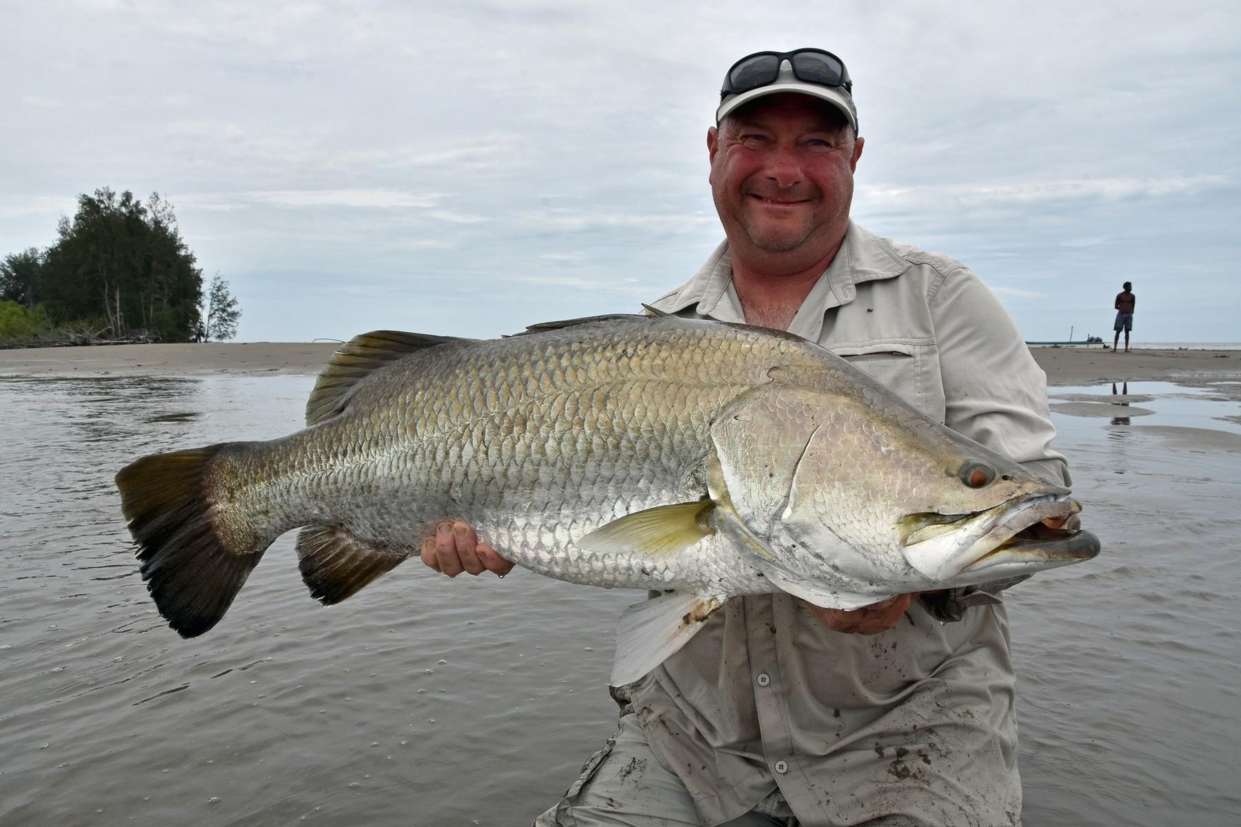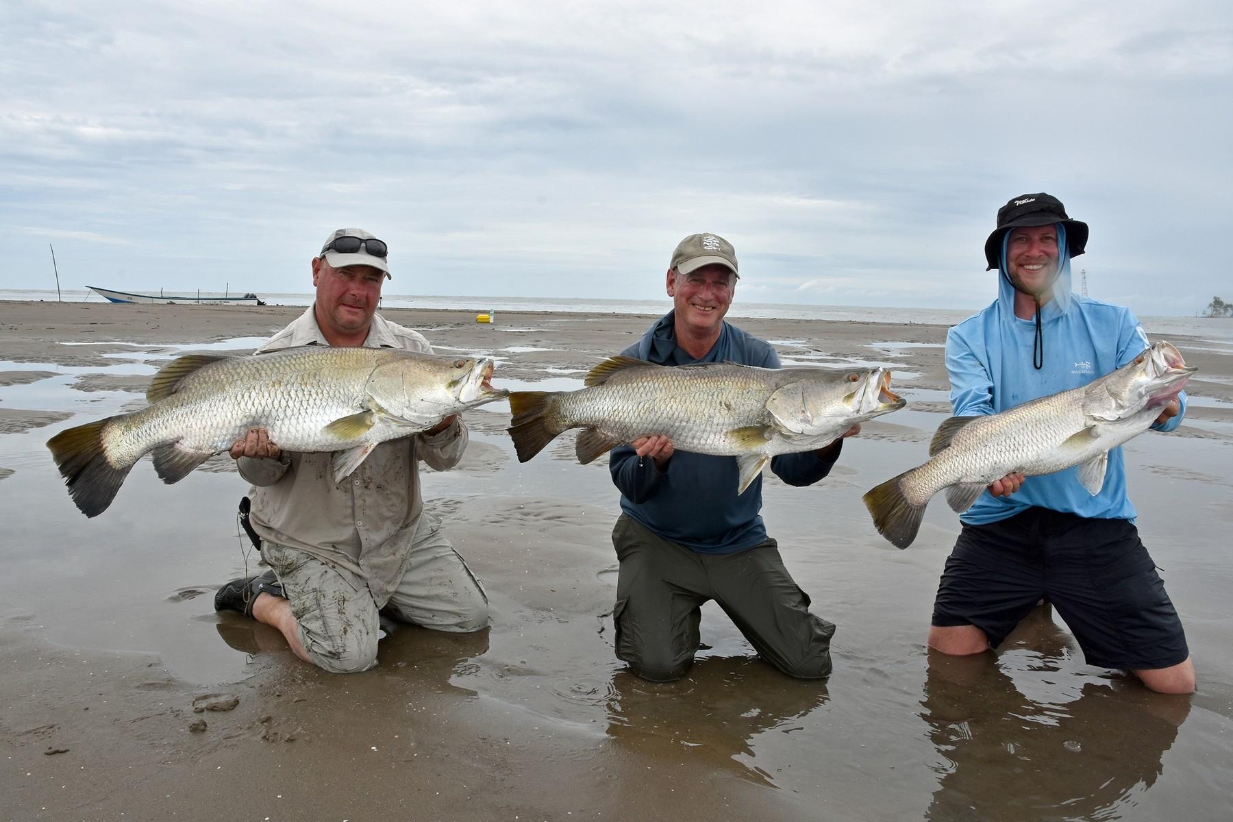 Wanneer de omstandigheden goed zijn (niet al te veel stroming en redelijk helder water) kun je zomaar 10 barramundis op een dag haken. Omdat er op obstakelvrij water wordt gevist, kun je behoorlijk licht vissen. Zeg maar zwaar zeebaarsmateriaal. Niet te licht want je moet rekening houden dat je zomaar een 100 cm+ barramundi kunt haken van 10-12 kg+! Ze zijn hier al gevangen tot 115 cm.