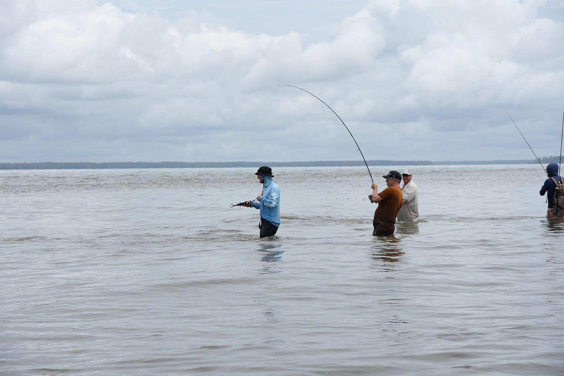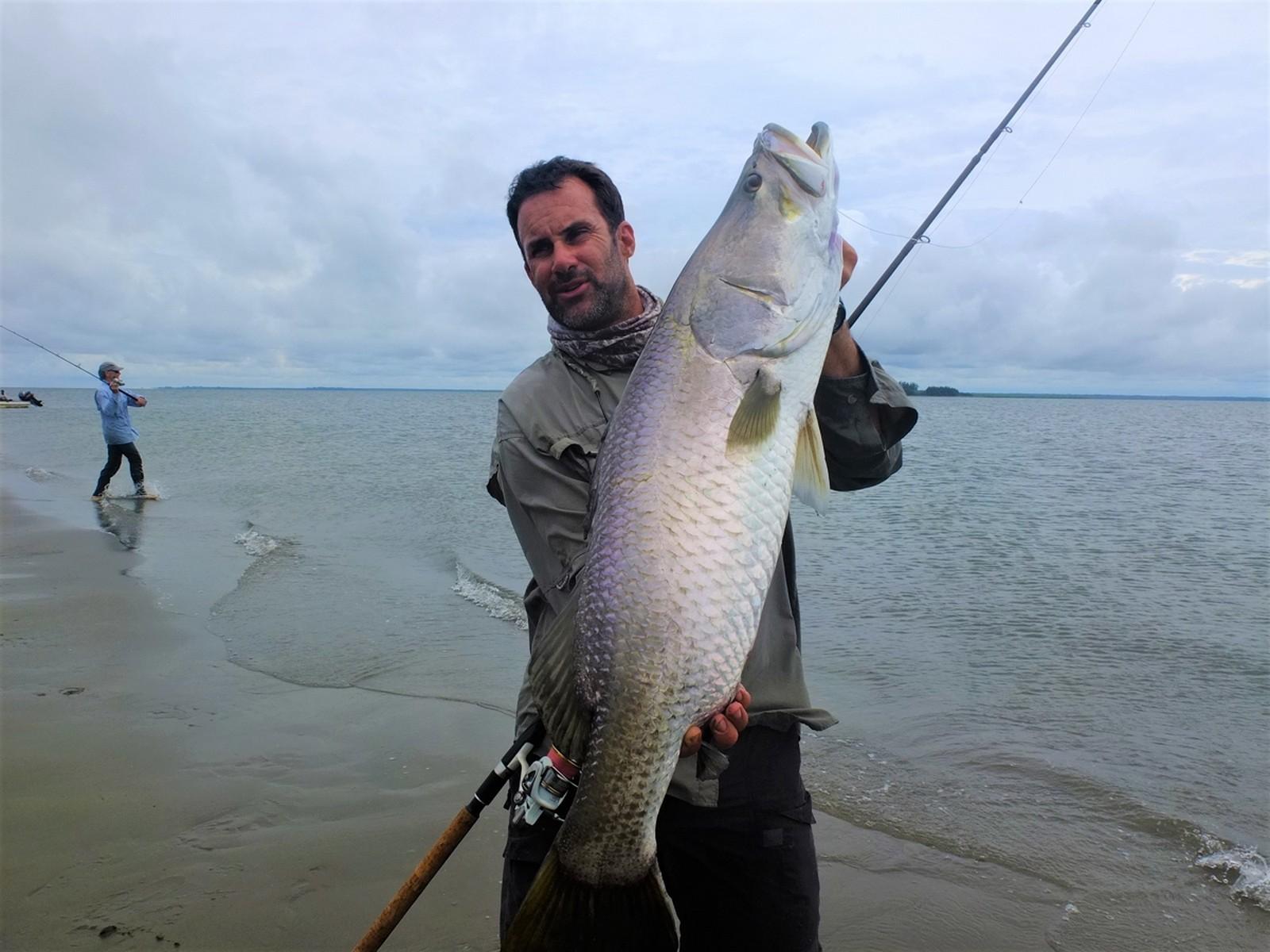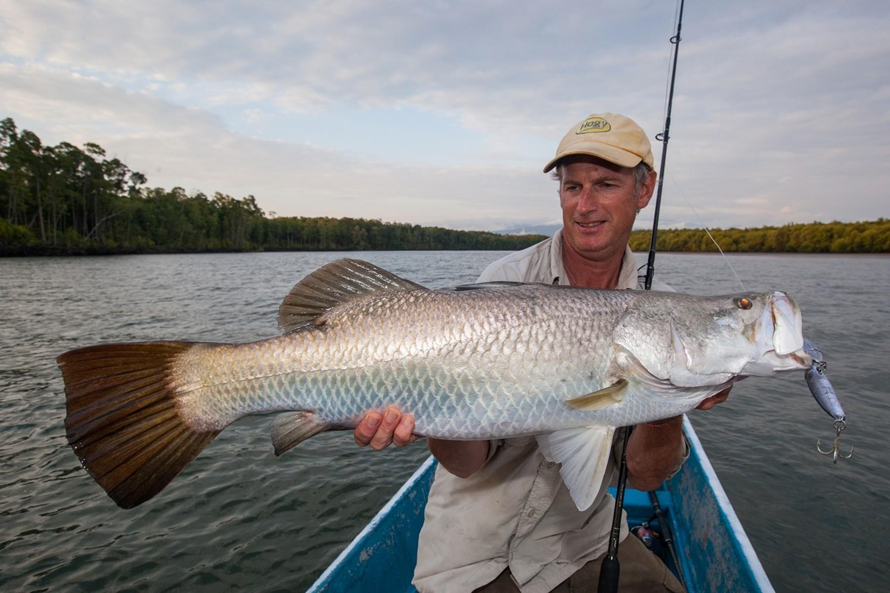 Wanneer de omstandigheden goed zijn (niet al te veel stroming en redelijk helder water) kun je zomaar 10 barramundis op een dag haken. Omdat er op obstakelvrij water wordt gevist, kun je behoorlijk licht vissen. Zeg maar zwaar zeebaarsmateriaal. Niet te licht want je moet rekening houden dat je zomaar een 100 cm+ barramundi kunt haken van 10-12 kg+! Ze zijn hier al gevangen tot 115 cm.