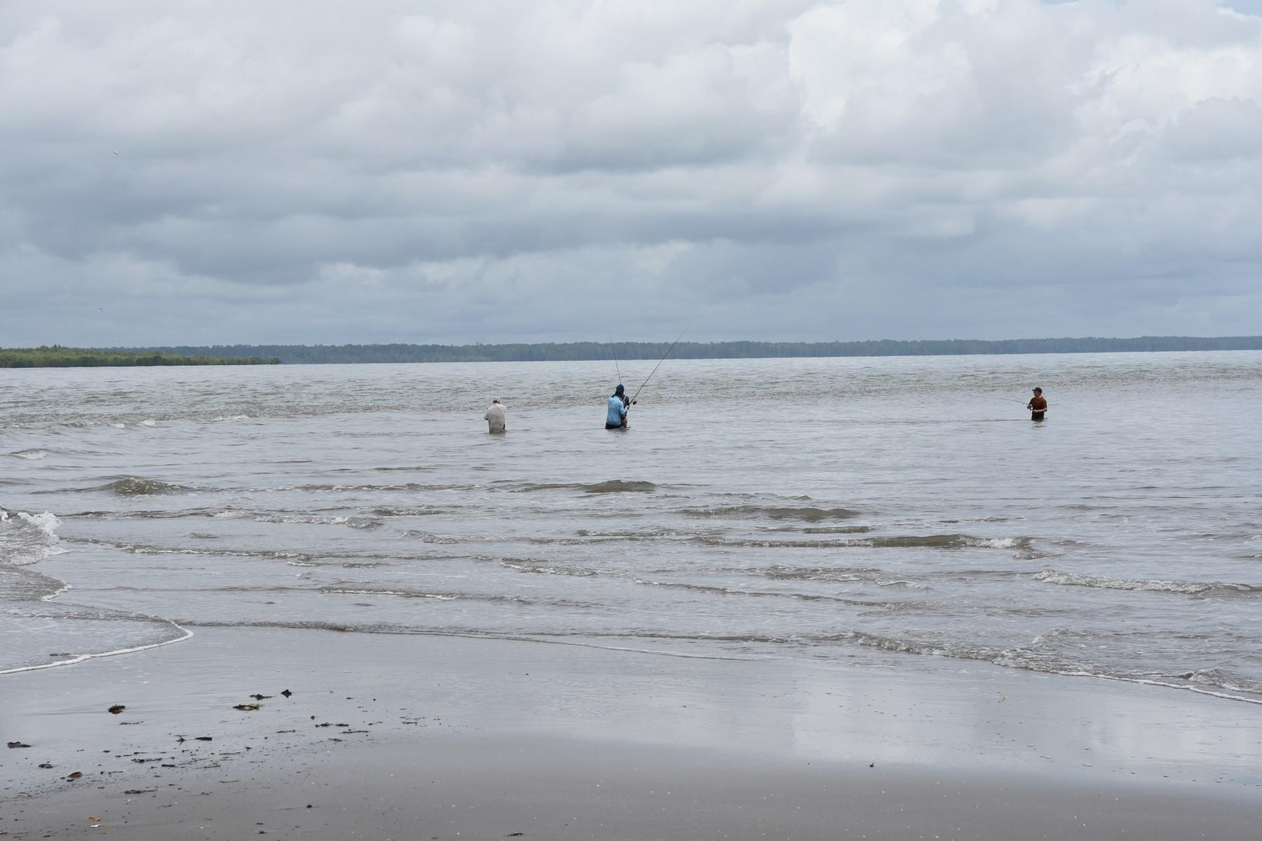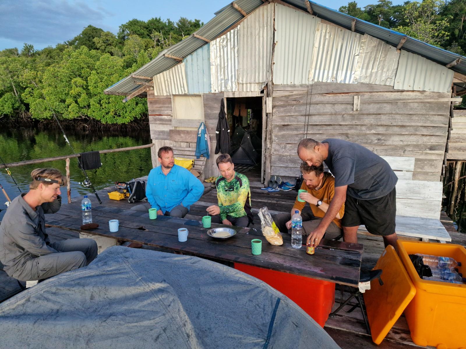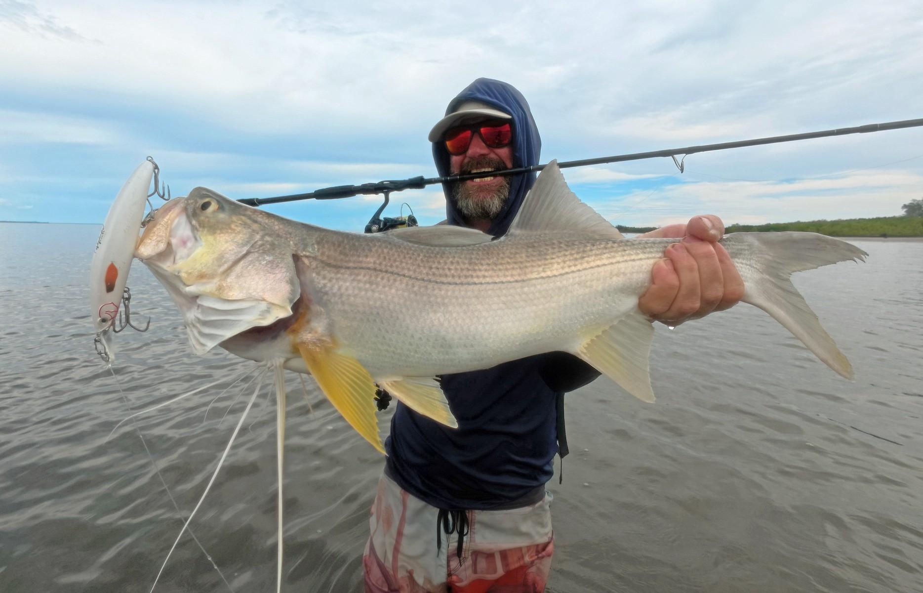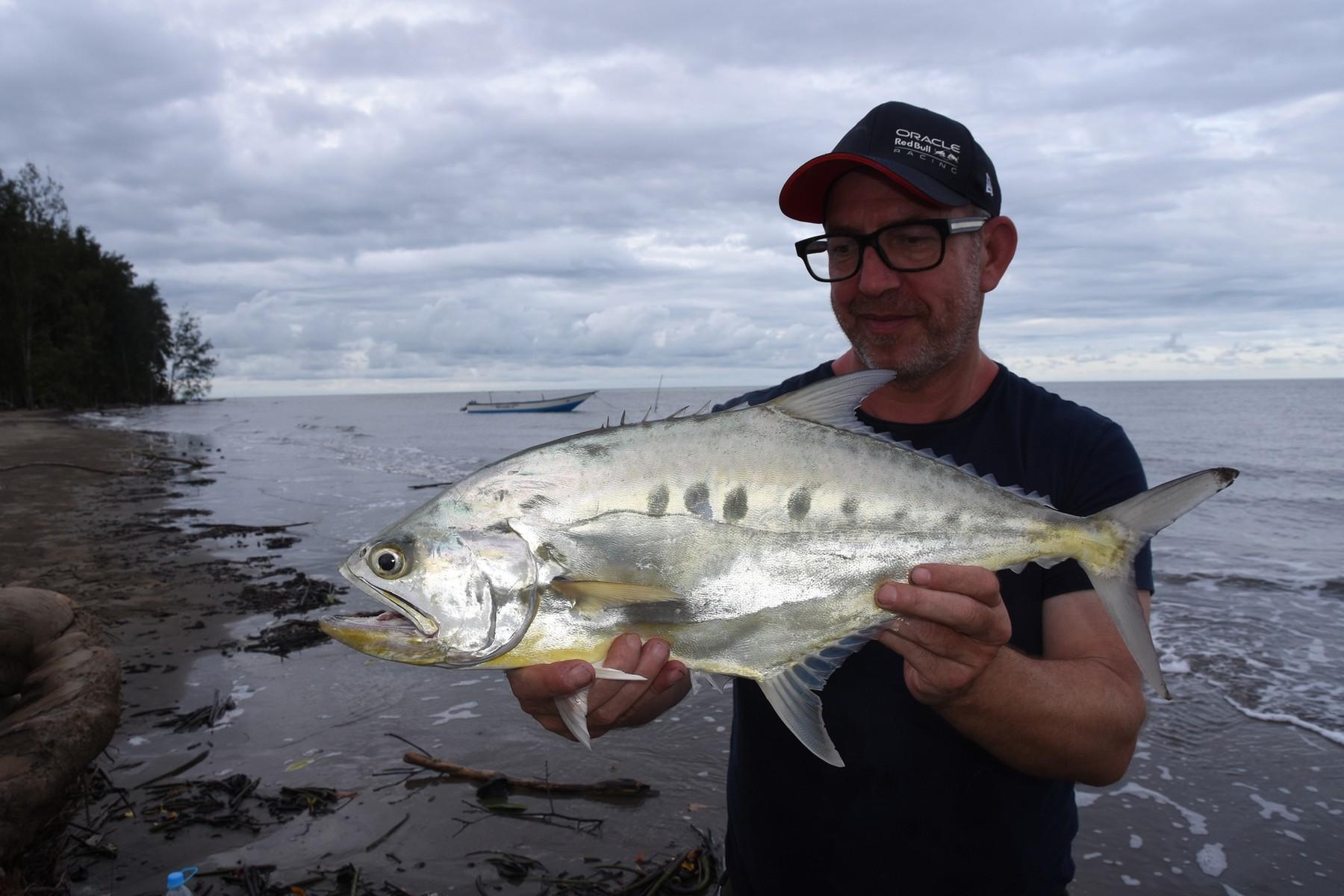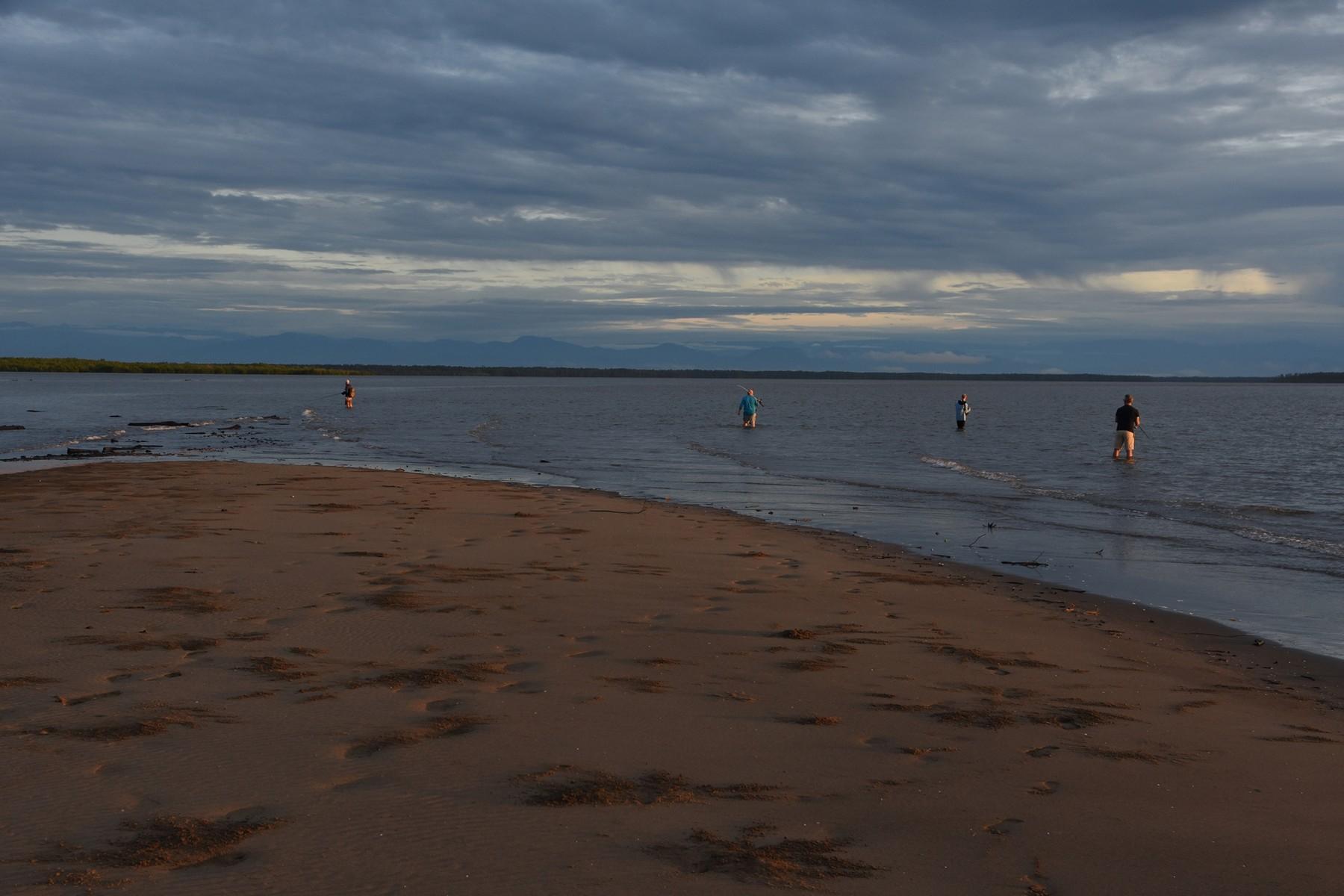 Het gebied waar we op barramundi vissen ligt aan de zuidkust van Papua en wordt gekenmerkt door ondiep water (1 tot 3-4 meter) met zandbanken en eilanden met soms behoorlijk wat stroming (afhankelijk van het getij). Vissen gebeurt hoofdzakelijk vanaf de kant, wadend in ondiep water, rond het eiland waar we kamperen of andere zandbanken/-eilanden. Zoutwaterkrokodillen komen in dit gebied gek genoeg niet voor. Omdat je vanaf het eiland kunt vissen, kun je dus zo je hengel pakken en gaan vissen, nog voor het ontbijt klaar is (als het tij goed is tenminste). De twee boten die mee zijn worden ook gebruikt om vanuit te vissen. Op barramundi, maar zeker ook voor queenfish die vaak wat verder uit de kant zitten.