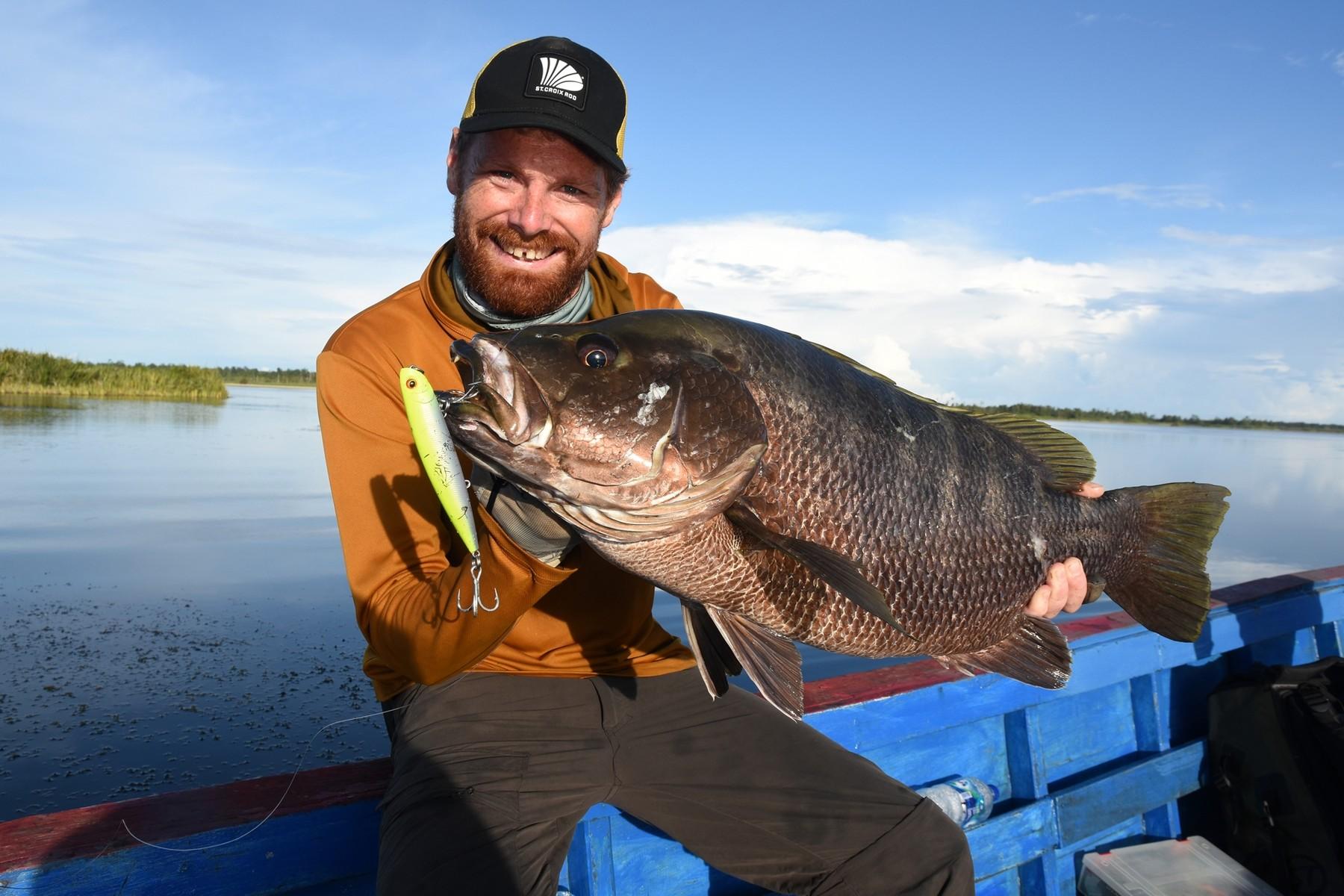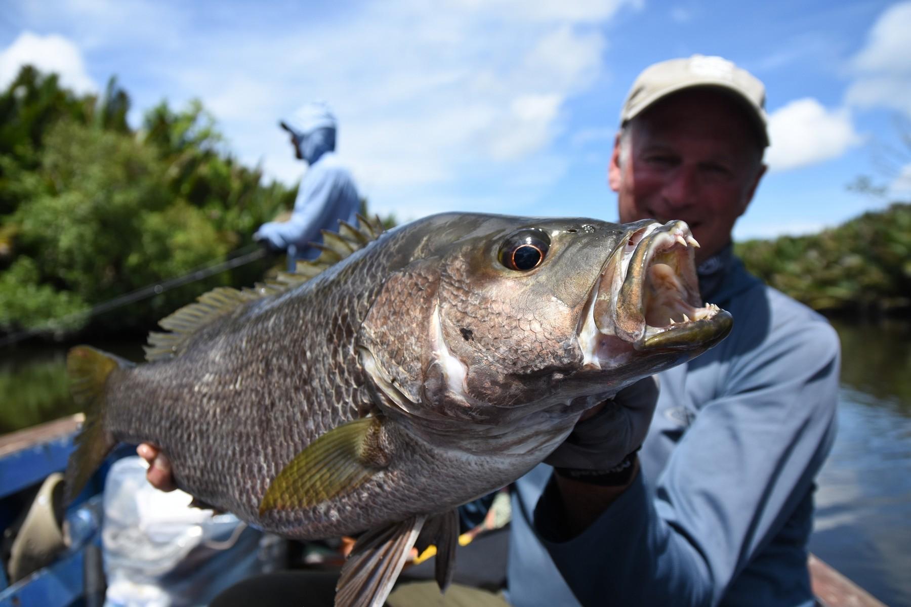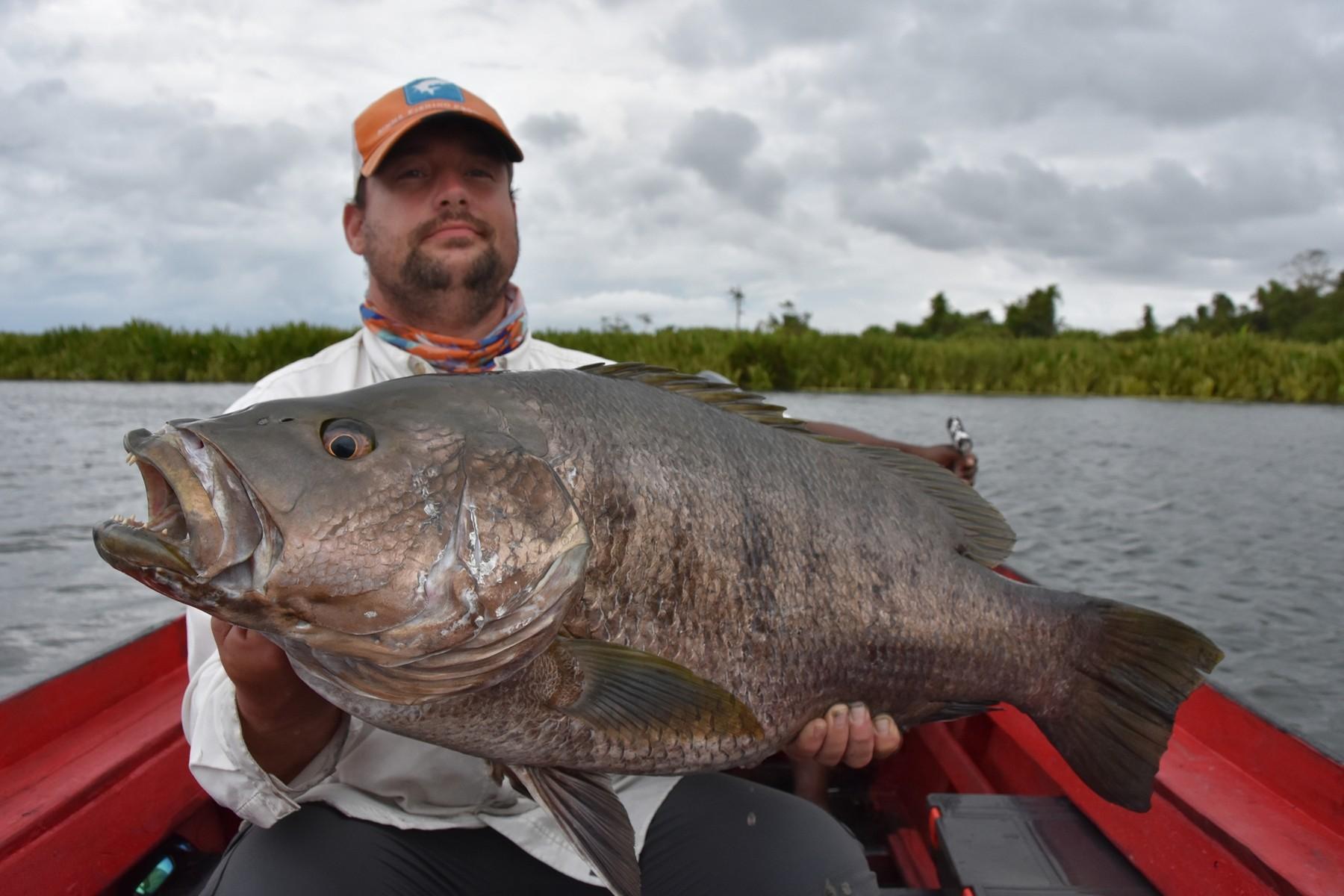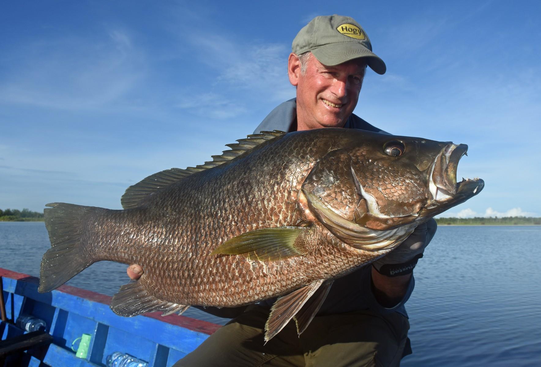 Papuan black bass (Lutjanus goldiei) staat algemeen bekend als de sterkste en meest agressieve vechter op deze planeet. Het is eigenlijk een ‘zoetwater’-snapper die leeft in (getijden)rivieren, meren en estuaria in Nieuw-Guinea, Papua en andere delen van Indonesië. Ze kunnen meer dan 20 kg zwaar worden, maar zelfs een vis van 8-10 kg zal is nauwelijks af te stoppen. De ultieme uitdaging voor avontuurlijke vissers!