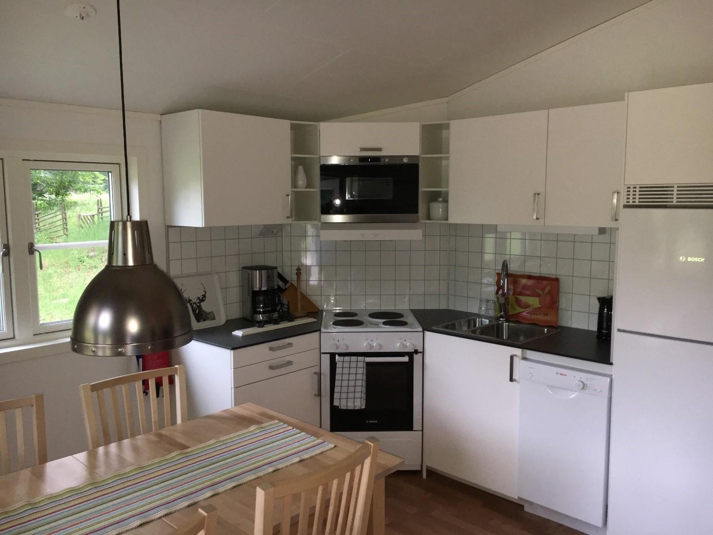 Älgen en Rådjuret Dit zijn typische woningen uit de regio Småland, gesitueerd in een overweldigende setting op slechts 150 meter van de receptie, campwinkel en café. De afstand tot de visboten is ongeveer 300 meter. De woningen hebben een oppervlakte van 40m² en 2 slaapkamers, een keuken en aan afstelruimte. Het zijn moderne en volledig ingerichte woningen met ruime keuken en is geschikt voor maximaal 6 personen. De keuken beschikt over een magnetron, koelkast, vriezer, fornuis, vaatwasser en er is een aparte badkamer met douche en toilet. Het overdekte terras is 12m² met tuinmeubilair en BBQ.