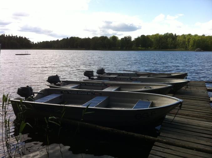De locatie beschikt over 20 visboten ( 410 Linder en 400 Sportman) elk met 4 PK Yamaha motoren of 30 lbs elektro motoren en de liefhebber kan indien gewenst ook een fishfinder huren. Bij de boot ontvang je een waterkaart van de meren rondom de locatie. En daarnaast beschikken de boten over twee hengelsteunen om te trollen en 4 om hengels rechtop in te plaatsen.
