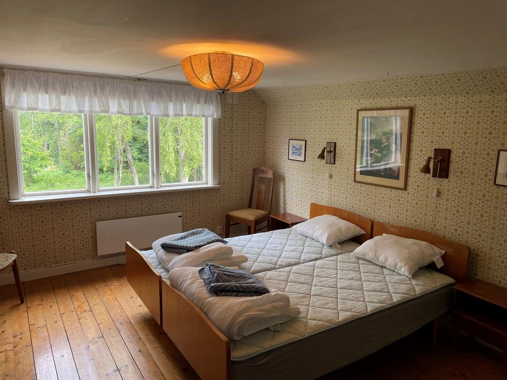 Vrigstad Gård Deze woning is met 200 m2 ruim van opzet en biedt plaats aan 12 personen in 6 slaapkamers. Eventueel kunnen twee extra bedden geplaats worden waarmee het maximum aantal gasten verhoogd kan worden tot 14. Het uitzicht over het meer is fenomenaal met een ruime tuin en een afstand tot het meer van 150 meter. De woning is oorspronkelijk in 1900 gebouwd en ademt nog de sfeer van Pippy Langkous. De twee badkamers zijn gerenoveerd. De woonkamer heeft TV en een open haard en je kan gebruik maken van de sauna in het buurhuis Rättarebostaden. De keuken is volledig ingericht met magnetron, vaatwasser, koelkast en vriezer. Het terras is 20 m2 en beschikt over tuinmeubilair en een BBQ plaats en er is een privé aanlegsteiger bij het meer.