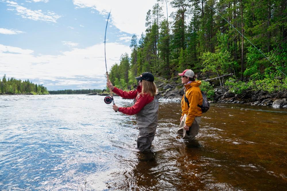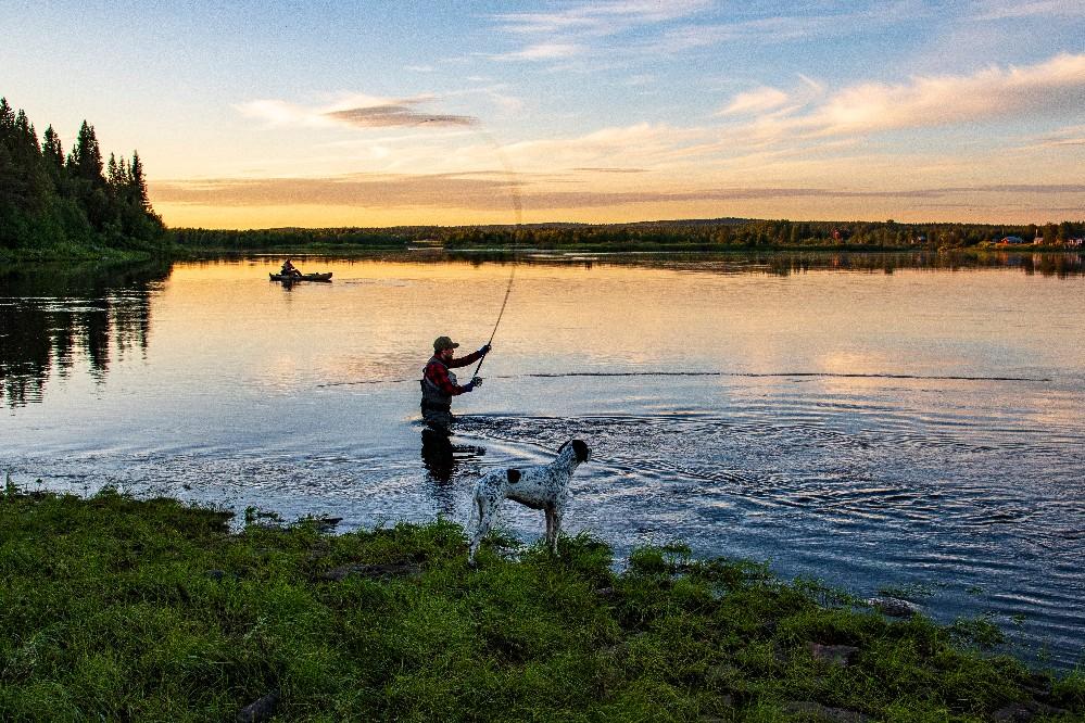Stel je voor dat je uitkijkt over de mooie rivier waar insecten in overvloed boven het water dansen en de vlagzalmen deze proberen als lunch te verschalken. Of stel je een van de vele afgelegen meren voor, midden in de eindeloze bossen, en de felle aanval op je kunstaas of streamer van de snoek die zich aan het einde van je lijn meld. Of wat dacht je van de middernachtzon die maar niet ondergaat boven de eindeloze stroomversnellingen van de machtige rivier de Muonio, en je droge vlieg drijft door de poel in afwachting van die hongerige zalm die langs komt en je dag perfect maakt! Beter dan dit wordt het gewoon niet!