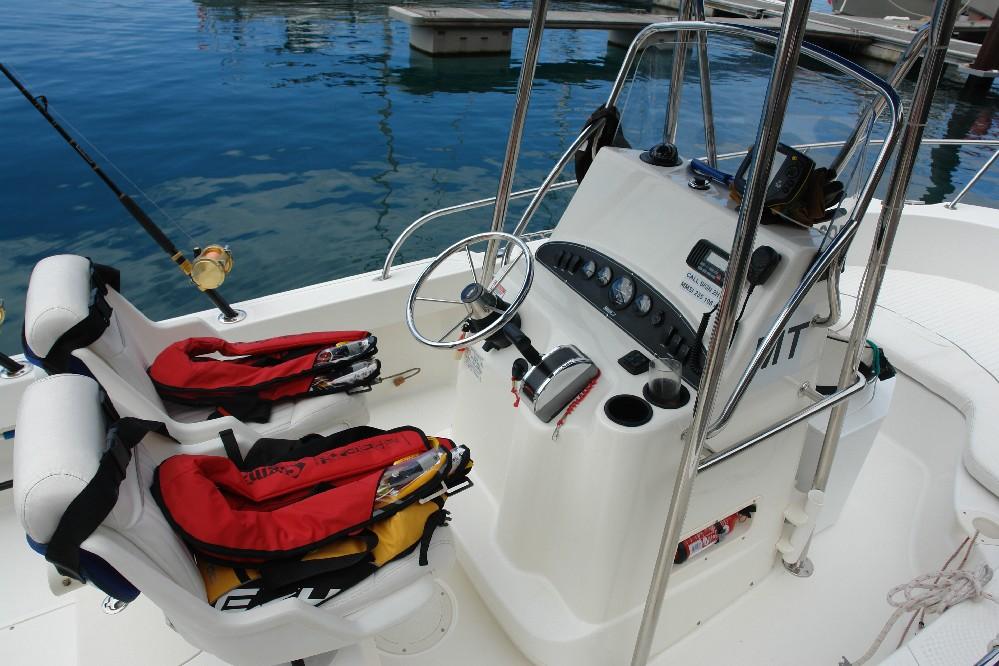 Voor de visserij bieden we de Boston Whaler Outrage 190. Deze boot is geschikt voor maximaal 4 gasten en richt zich op het light tackle big game vissen. Dan kan dus ook op de marlijn maar even zo goed om te popperen of jiggen. Denk daarbij aan dorado, barracuda, snapper, amberjacks, murene, haaien en roggen. Dit is extreem spectaculair op de lichte materialen die hier aan boord geboden worden. De Mako is in 2015 in gebruik genomen. Hier wordt gebruik gemaakt van volledig nieuw Penn International en Shimano materiaal van 30/50 en 80 lbs. Hier kun je gebruik maken van een vechtharnas om de vis stand up te drillen of de vechtstoel voorop de boot. De boot heeft een 115 PK Mercury Marine motor die je snel en comfortabel naar alle gewenste visplekken brengt. De Mako biedt hele actieve visserij waarbij je zelf de hoofdrool speelt. Jiggen en popperen of werpen met lures langs bepaalde plekken levert spannende en spectaculaire visserij op. Maar indien gewenst ook op marlijn!