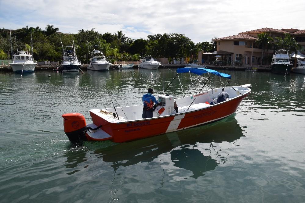 Voor het vissen maken we gebruik van een panga van ruim 7 meter lang. Dat is een lichte open boot met een neerklapbaar zonnedak voorzien van een 175 PK motor om comfortabel en snel op de gewenste visstekken te komen. De boot is voorzien van alle benodigde veiligheidsapparatuur en vergunningen. Jeremias Luna is een van de lokale kapiteins en is bekend om zijn goede vangsten en kennis van het lokale water. Hij neemt je mee naar de beste stekken op jacht naar de grote amberjacks, groupers, barracuda’s, zeilvis, tonijn etc en de mooiste herinneringen. Deze stekken liggen op korte afstand tot maximaal 30 minuten varen. Hier is de drop off waar de vissen zich ophouden en waar het water naar grote diepte reikt. Precies op deze rand komen de verschillende zeestromen bij elkaar en is veel voedsel beschikbaar en zijn dus ook de (grote) vissen te vinden.