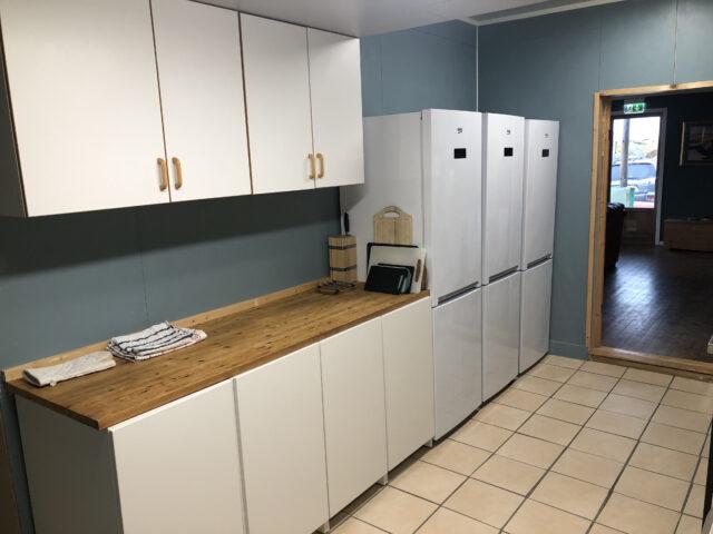 Er is vanzelfsprekend ook een fileerruimte beschikbaar met 3 tafels en stromend water en iedere groep heeft zijn eigen vriezer.
